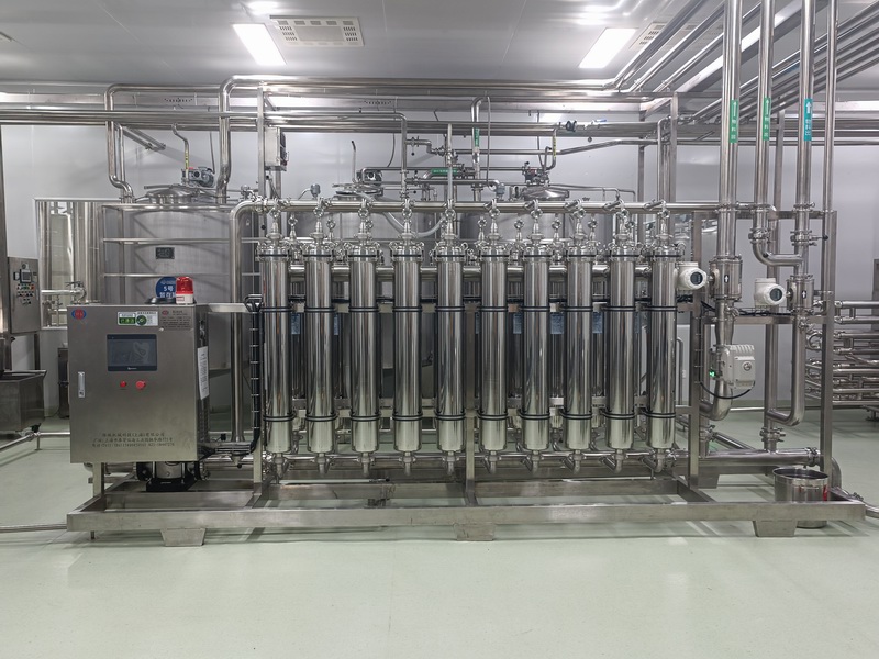 該生產(chǎn)線用于果汁飲料的生產(chǎn),可根據(jù)客戶要求及產(chǎn)量定制2000-36000瓶/每小時的生產(chǎn)線,整條生產(chǎn)線包括水果前處理系統(tǒng)、水處理系統(tǒng)、化糖調(diào)配系統(tǒng)、脫氣均質(zhì)殺菌系統(tǒng)、CIP清洗系統(tǒng)、吹瓶機(jī)系統(tǒng)、理瓶機(jī)系統(tǒng)、風(fēng)送、灌裝機(jī)、二次殺菌系統(tǒng)、套標(biāo)機(jī)、吹干機(jī)、噴碼機(jī)、膜包機(jī)、輸送、鍋爐等,自動化程度可根據(jù)客戶要求配置,提供工藝流程及車間布局設(shè)計,全程技術(shù)指導(dǎo)