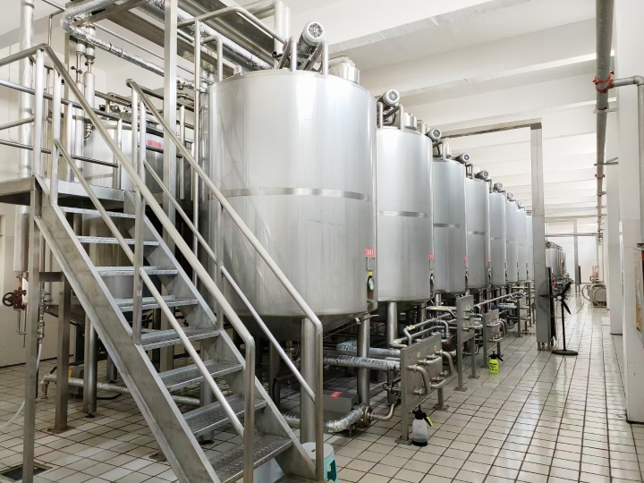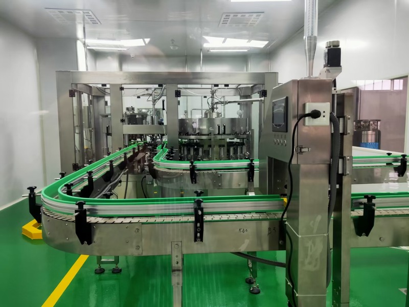 該生產(chǎn)線用于鮮果果汁飲料的生產(chǎn),可根據(jù)客戶要求及產(chǎn)量定制2000-36000瓶/每小時(shí)的生產(chǎn)線,整條生產(chǎn)線包括水果前處理系統(tǒng)、水處理系統(tǒng)、化糖調(diào)配系統(tǒng)、脫氣均質(zhì)殺菌系統(tǒng)、CIP清洗系統(tǒng)、吹瓶機(jī)系統(tǒng)、理瓶機(jī)系統(tǒng)、風(fēng)送、灌裝機(jī)、二次殺菌系統(tǒng)、套標(biāo)機(jī)、吹干機(jī)、噴碼機(jī)、膜包機(jī)、輸送、鍋爐等,自動(dòng)化程度可根據(jù)客戶要求配置,提供工藝流程及車間布局設(shè)計(jì),全程技術(shù)指導(dǎo)