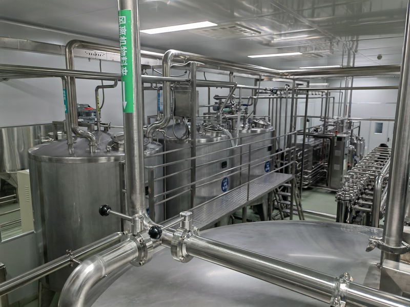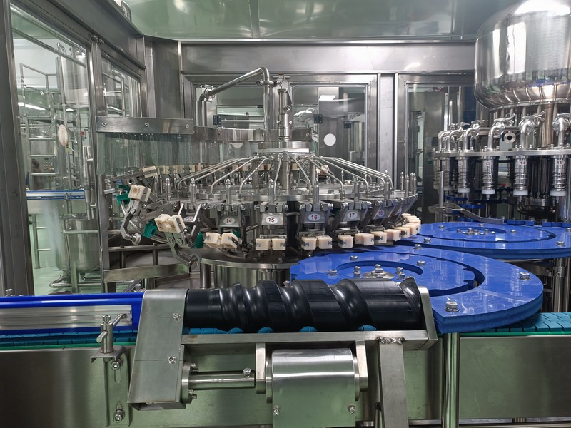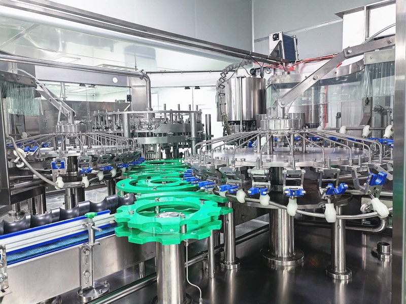 該生產(chǎn)線用于果汁飲料的生產(chǎn),可根據(jù)客戶要求及產(chǎn)量定制2000-36000瓶/每小時的生產(chǎn)線,整條生產(chǎn)線包括水果前處理系統(tǒng)、水處理系統(tǒng)、化糖調(diào)配系統(tǒng)、脫氣均質(zhì)殺菌系統(tǒng)、CIP清洗系統(tǒng)、吹瓶機(jī)系統(tǒng)、理瓶機(jī)系統(tǒng)、風(fēng)送、灌裝機(jī)、二次殺菌系統(tǒng)、套標(biāo)機(jī)、吹干機(jī)、噴碼機(jī)、膜包機(jī)、輸送、鍋爐等,自動化程度可根據(jù)客戶要求配置,提供工藝流程及車間布局設(shè)計,全程技術(shù)指導(dǎo)