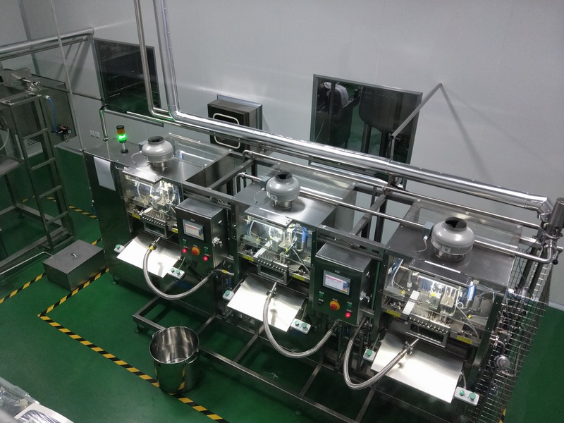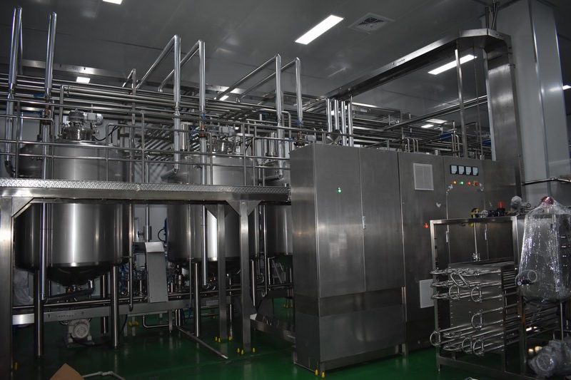 功能飲料生產(chǎn)工藝:水處理→配料→汽液混合→灌裝→溫瓶→套標(biāo)→吹干→噴碼→膜包→包裝成品
