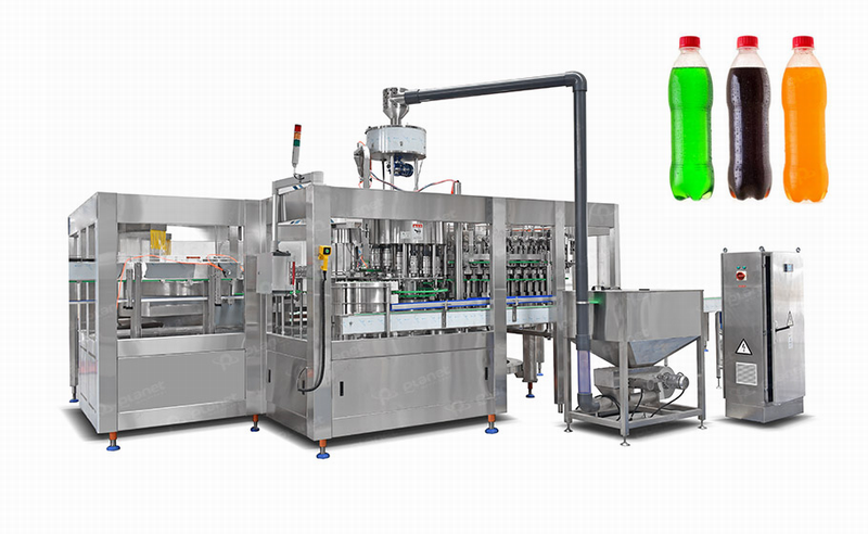 碳酸飲料生產(chǎn)線用于PET瓶含氣飲料(碳酸飲料)的生產(chǎn),例如可口可樂、百事可樂、雪碧以及含氣礦泉水等。 在一機上實現(xiàn)沖瓶、灌裝、封蓋。 碳酸飲料生產(chǎn)線采用了等壓灌裝原理及彈簧閥,確保了飲料品質(zhì)。 關(guān)鍵的電器元件均采用知名商家的產(chǎn)品。 灌裝缸、灌裝閥等與物料直接接觸的零部件均采用不銹鋼或無毒材料制造,符合食品衛(wèi)生要求。 密封件采用耐熱橡膠,滿足了用戶高溫消毒的工藝要求 采用了先進的磁力離合調(diào)整擰蓋力矩裝置,確保了封蓋質(zhì)量。 碳酸飲料生產(chǎn)線采用了PLC可編程控制器,實現(xiàn)了從瓶子入機到包裝完畢的全自動控制,采用了變頻調(diào)速控制,易于用戶調(diào)整,滿足了不同工藝對生產(chǎn)能力的要求。